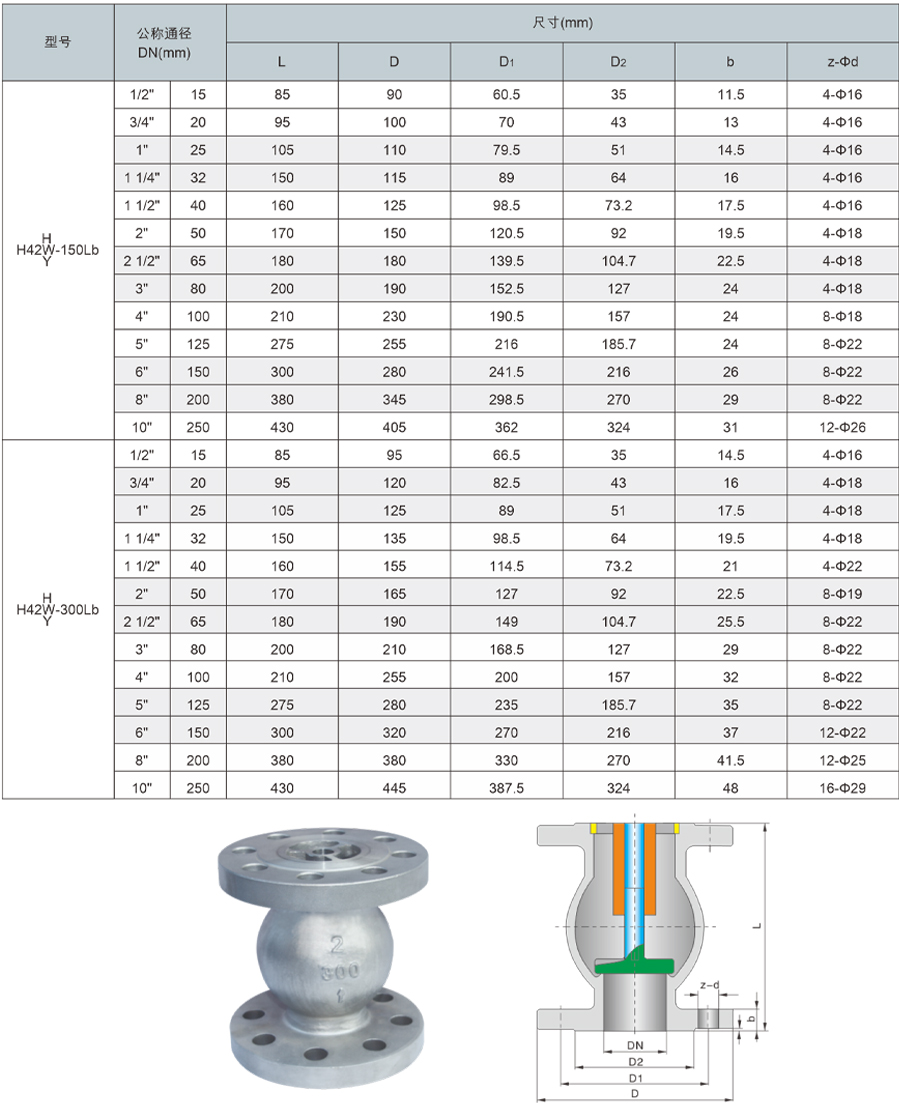 H42法兰单瓣升降式止回阀主要尺寸及重量